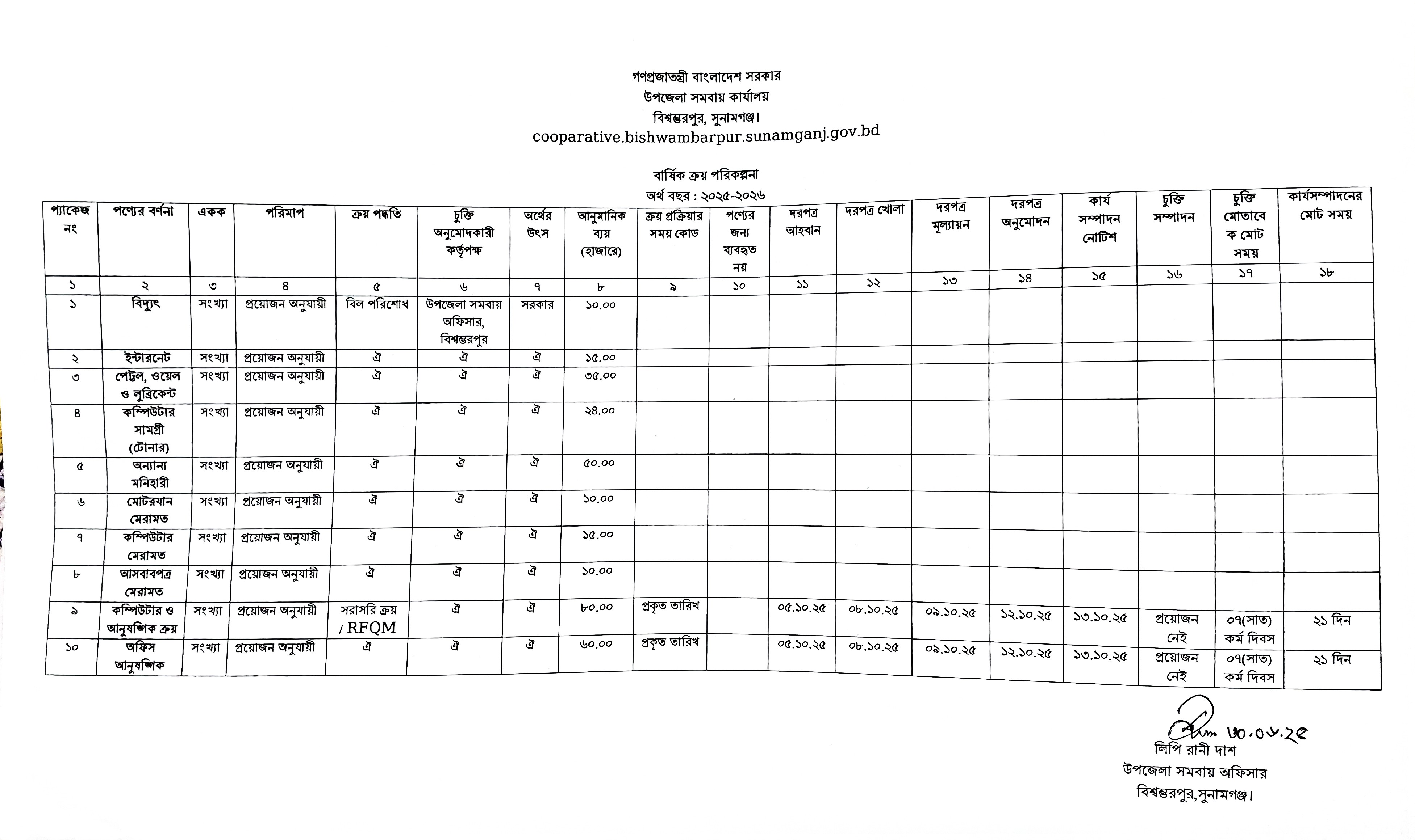 বার্ষিক ক্রয় পরিকল্পনা, ২০২৫-২০২৬